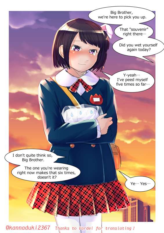 幼稚園にお迎えに来た妹と、お土産を持って帰るお兄ちゃんの落書きです。 英訳を頂いたので英語版を掲載しました。Vardei様、ありがとうございます!