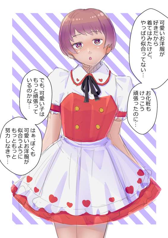 可愛いお洋服が好きなんだけど、地味な顔のせいで似合わないことに悩む女装男子くんの落書きです。
