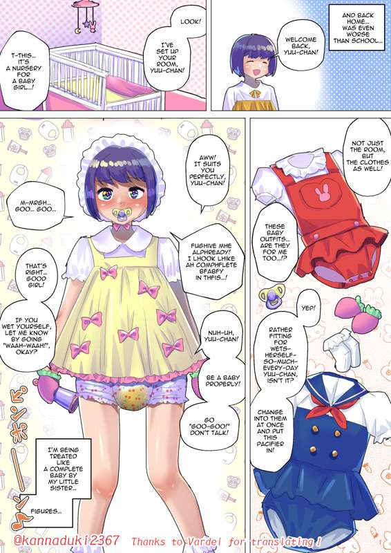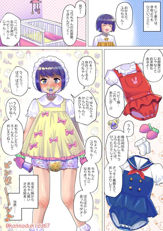 前回:https://jugatsu-usagi.fanbox.cc/posts/3877257 おしゃぶりさせられているので、「許してよ、こんなの、完全に赤ちゃん…!」って言えずにいます ※英語版を追加しました。Vardei様、ありがとうございます!