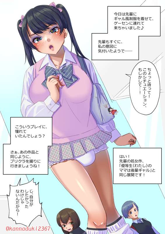 後輩に調教される女子大生のイラストです。