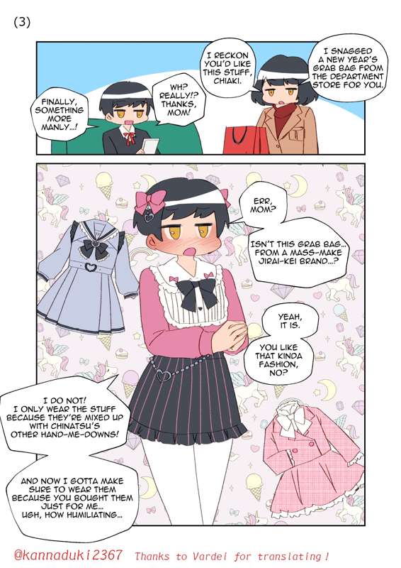 女装難の相が出ている少年の落書き漫画です。 前回:https://jugatsu-usagi.fanbox.cc/posts/9209264 まとめ:https://jugatsu-usagi.fanbox.cc/posts/6160245 English:https://jugatsu-usagi.fanbox.cc/posts/6200624