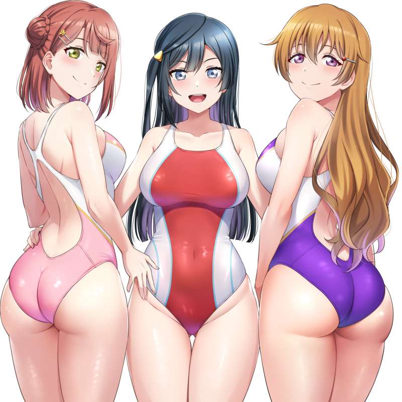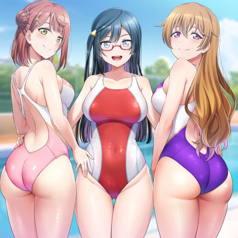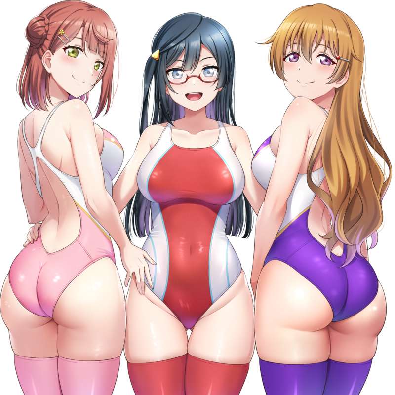 競泳水着3人娘【R-18なし】(高画質8枚/ソックス、眼鏡、背景差分)