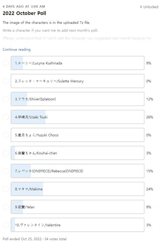 Total 76(FANBOX)+34(Patreon) votes As a result, the winner is 宇崎月/Uzaki Tsuki Thank you for your vote! 投票結果1位は、宇崎月になりました! みなさん、投票してくださって本当にありがとうございます!