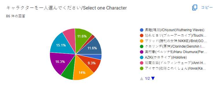 Total 86 votes As a result, the winner is 奥村春(ペルソナ5)/Haru Okumura(Persona5)! Thank you for your vote! 投票結果1位は、奥村春(ペルソナ5)になりました! みなさん、投票してくださって本当にありがとうございます!