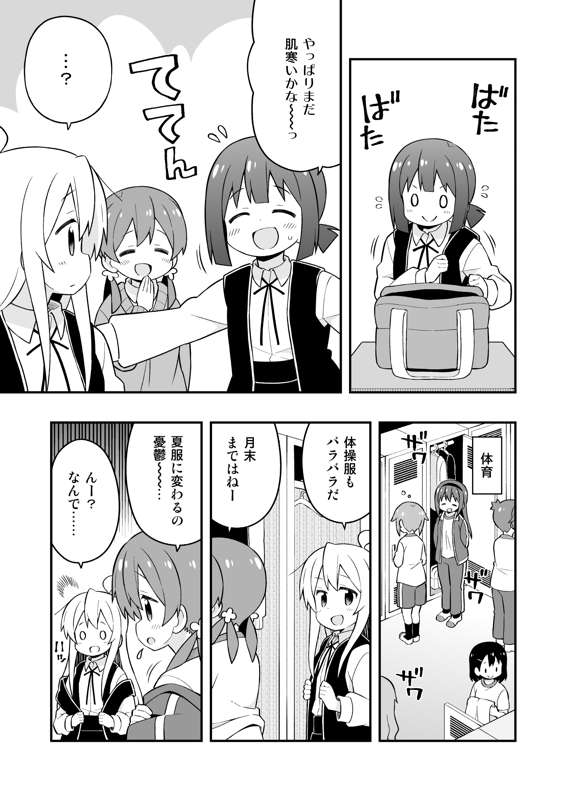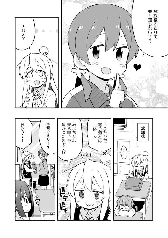 みよちゃん回です。 制服と似ててわかりにくくなっちゃったのですが、扉絵の衣装は私服です。(何故かお揃い) まひろ大人ブラのヒミツは同人誌のオマケ漫画で…!(FANBOX公開予定!) 明日(18日)はCOMIC1!新刊はありませんが、関東のイベントで初売りの本もありますので、参加予定の方は是非お立ち寄りください。 余っているかえでちゃんの水着ポストカードも配布します。(暑中見舞いのイラスト)