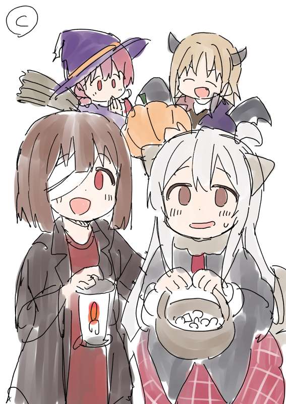 COMIC REX2020年12月号は、おにまい2度目の表紙です!今回は表紙のラフイラストをご紹介。 ハロウィンテーマで3~4人というオーダーを元に3パターン4枚用意しまして、個人的には3枚目推しだったのですが、編集部のおっぱい採用で1枚目をベースに進める形となりました。 完成形はREX本誌をチェック! イラストは苦手なもので、表紙ともなると緊張して絵が堅くなってしまいまして…ラフのほうが愛嬌があったりしますよね。(絵師あるある?)