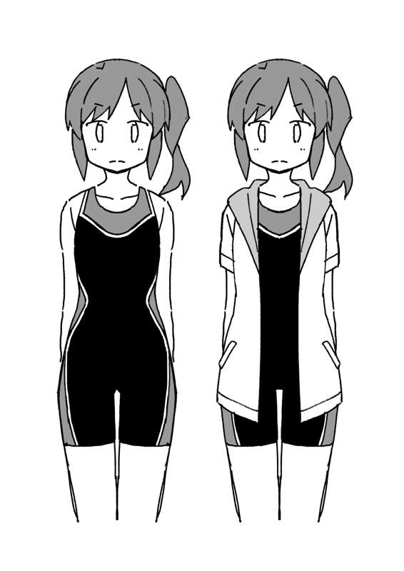 水着衣装です。図鑑では珍しく、背面も。