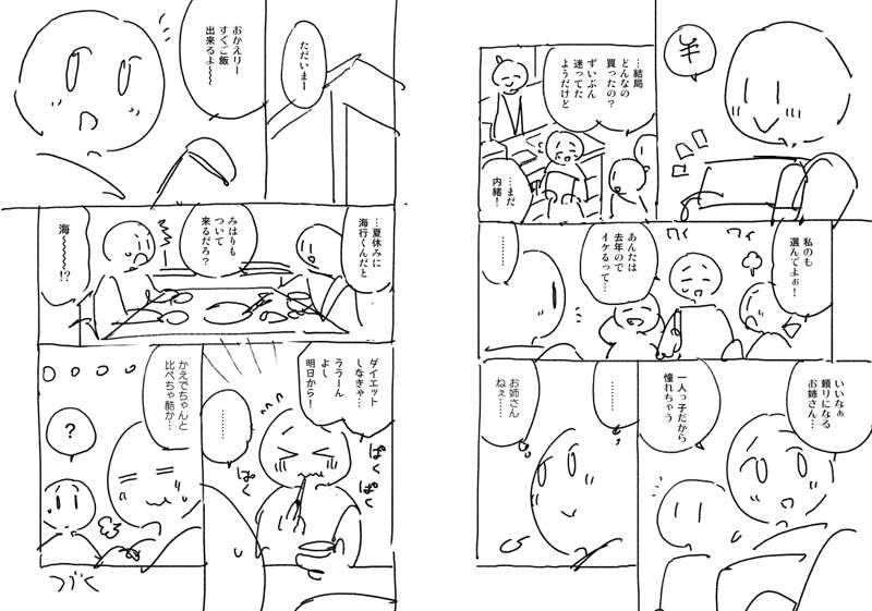 たとえば今回のかえでの水着解説なんかは、ダラダラ書くとセリフだらけになってしまうので、いかに簡潔に、かつ文字数を揃えるかを考えます。