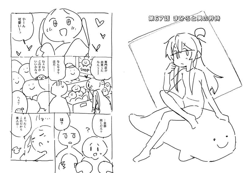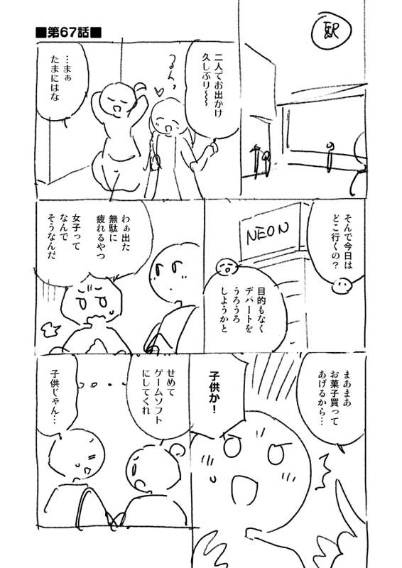 お待たせしました、67話のネームです。 買い物やお出かけで何か荷物を持っている回は地味に作画が大変です。たまに書き忘れて荷物が消えることがありますが、気付かないフリをするのが大人仕草というもの…。 さて、今週末は最新話の先行公開です。 だいたい土曜日に更新しているので、月末が金曜日の月は完成予定日が実質前倒しになってなかなか大変です。 結構作画が重い回、頑張ったのでどうぞお楽しみに~