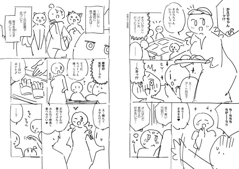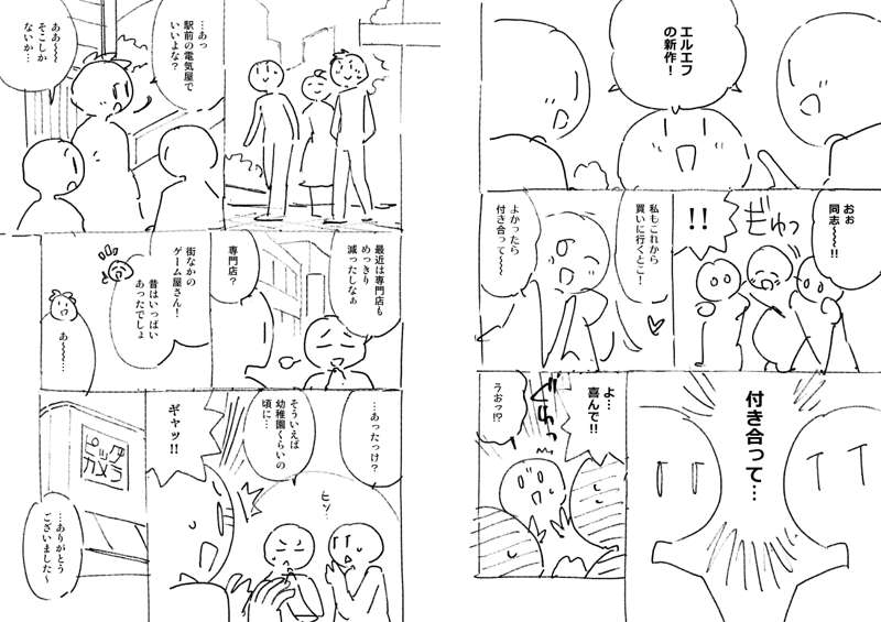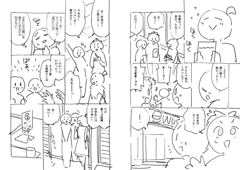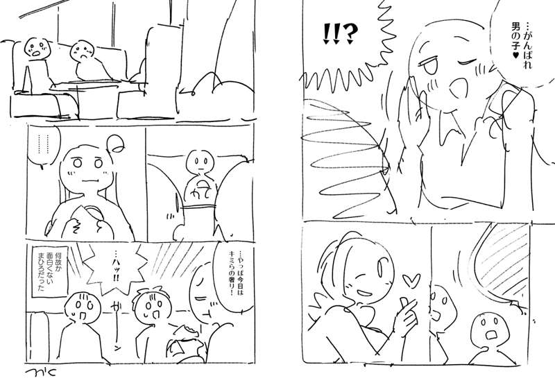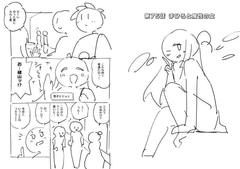 75話のネームです。 偽ファイナルファンタジーのタイトルをどうするか微妙に迷った覚えがあります。 最後、おごりといっても既に支払済なのでは…?という読者の声を頂きましたが、きっとゆうた君が3人分まとめ払いしてて後で割り勘するシステムだったのでしょう。 そう言いつつ、お兄ちゃんはオトナなのでちゃんとお金は出したはず…。 やっぱり男子回は人気ですね。ニコニコ漫画のコメント数の初速がダントツの回でした。