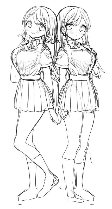 あんにょん🐻ゆきです 巨乳シリーズで双子ちゃんいたら めっちゃ可愛いね!って遥か昔に話していて ずっとどんなデザインの双子ちゃんが良いかな~って悩んで ラフのまま発見されました…笑 いつか完成するかなぁ