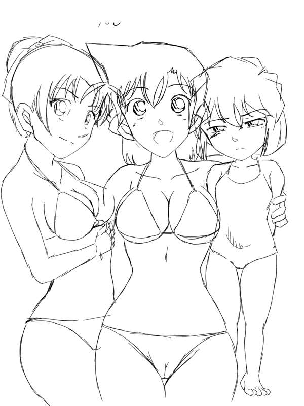 春をすっ飛ばしてもう夏日ですね。 ということで久々の蘭和灰原の複数水着絵! やはりこの時期になると水着絵描きたくなりますね。 色だけのやつも結構いい感じだったので線画なしverも載せました。 全裸差分がラフまでしかないのはご愛嬌ということで・・・。