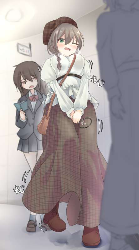 お姉さんがギリギリで耐えながら順番待ちをしている絵です!