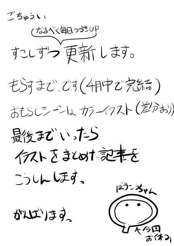 文字がよめない はじめてなんでとりあえずこのクオリティでお願いします! これ以上のクオリティを出すと完結できるきがしない! 次回以降は恥ずかしいので支援者の方限定で投稿していきます。 もし好評だったら続けていきたい (おもらしシーンはいつものCG差分形式になる予定です。)