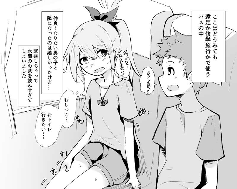 気になってる異性の前でもじもじしている女の子はかわいいねっていう絵です。
