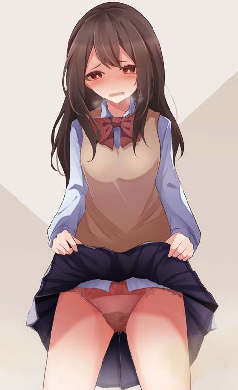 長い時間トイレに行けなくておしっこ限界な女の子におぱんつを見せてもらいたい という絵