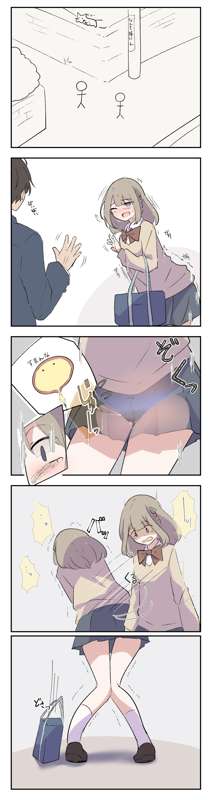 「トイレに行きたい」が恥ずかしくて言えなかった女の子がおもらしするお話【ミニ漫画+カラーイラスト3枚+差分(合計11枚くらい)】 (Pixiv Fanbox)