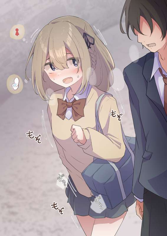 今回のかわいく描けたポイントはサムネイルにもしました。男の子と話しているけどトイレの事で頭がいっぱいの一枚絵の表情と、分かれ道でばいばいしてる時の ガタガタ震えているもうダメそうな女の子です。女の子が我慢で必死に頑張っている姿はかわいいね。