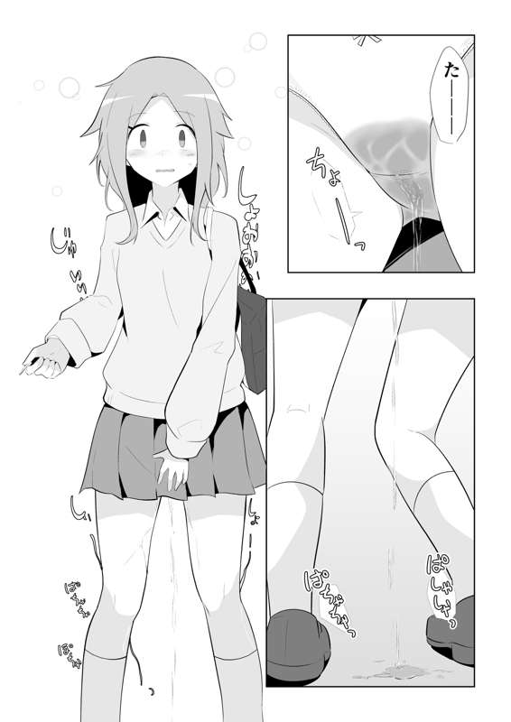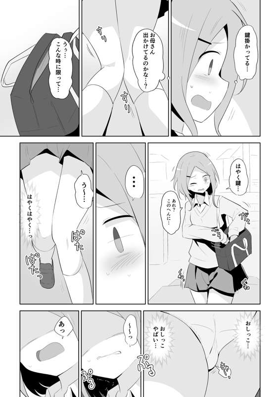おしっこ漏らしちゃった女の子の短い白黒漫画6ページ (Pixiv Fanbox)
