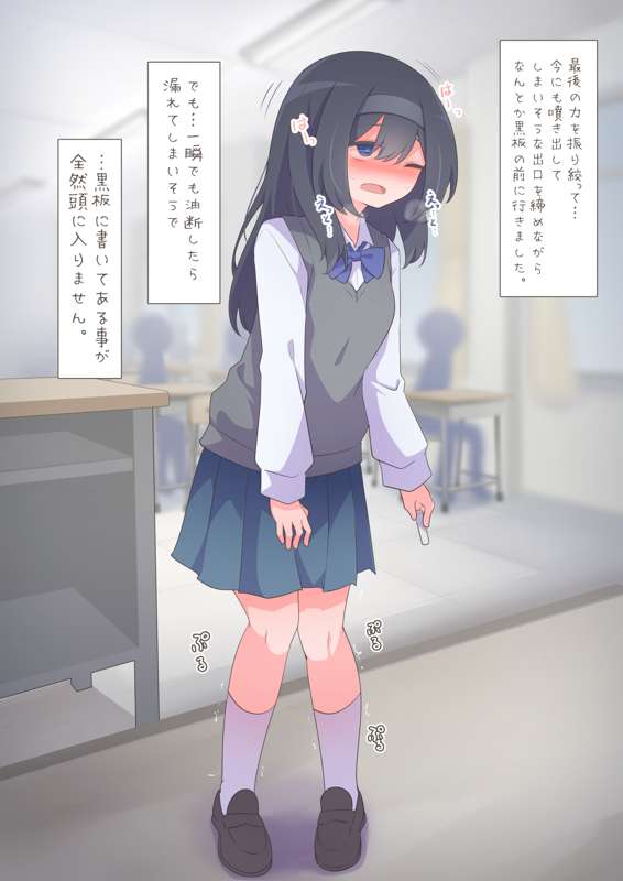 「トイレに行きたい」と言えなくなってしまった女の子が皆の前でおしっこを漏らしてしまうお話【ミニ漫画+イラスト3枚+差分(合計38枚)】 (Pixiv Fanbox)