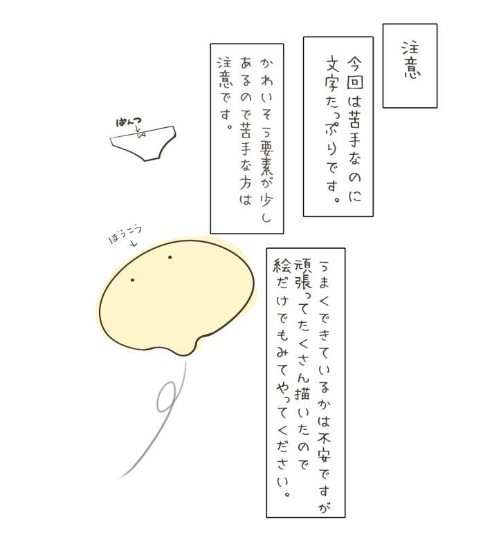 たぶん私のお絵かきの中ではかわいそう要素が強めの方だとは思ったので事前に注意をいれました。