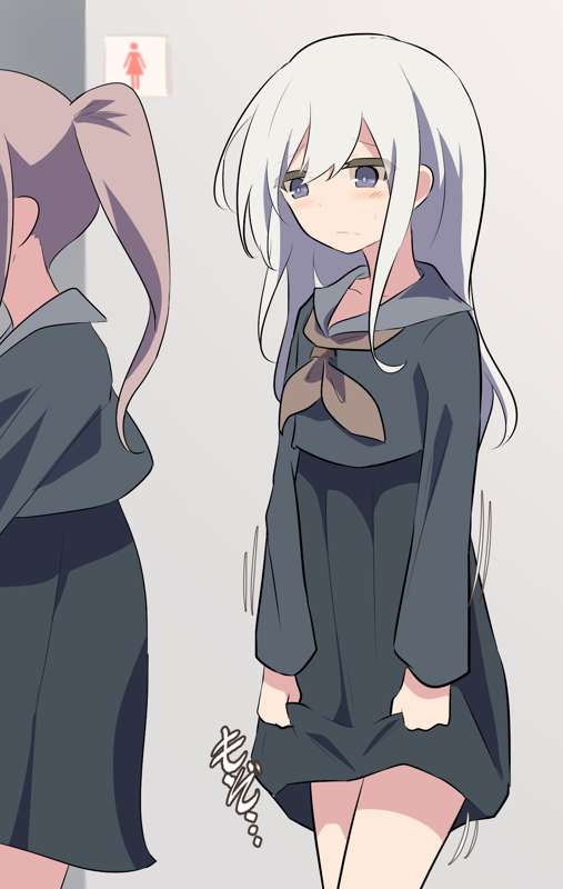 我慢していたおしっこが噴き出して変な声をだしてしまった白い髪の子