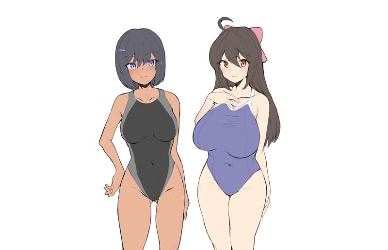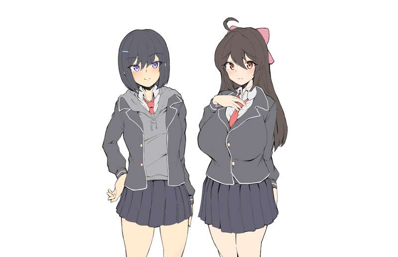 なんとなく描きたくなったオリジナル幼馴染寝取らせモノの設定画です。 二人で主人公と交際していた巴とアオイの二人が、主人公から「寝取らせプレイ」の話を聞いて……みたいな話を描いてみたい。