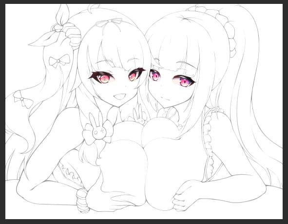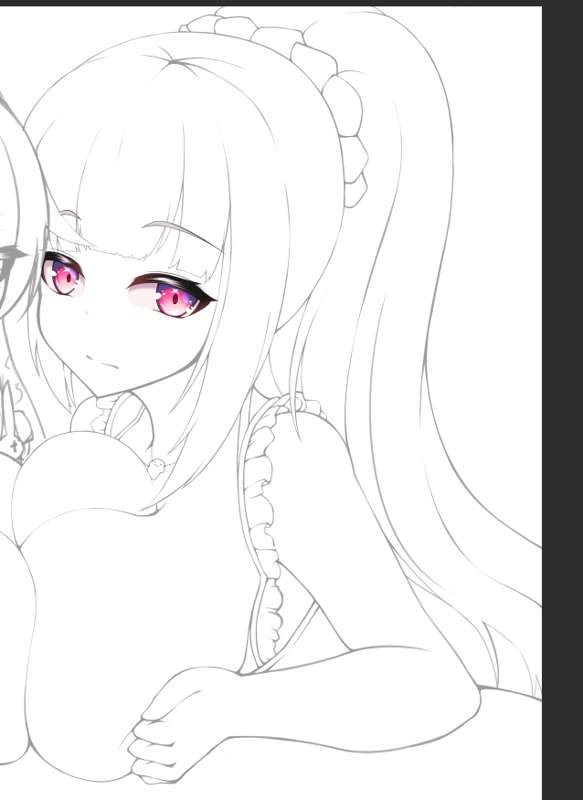 最初は水着だから海辺でいいかなぁ~~~とか思ってたら明るすぎて結局洋館にしたっていう経緯がありまして ラフ→ラフ色→今回はラフを削って線画にしました→ベタ色→着色(ベールは境界効果つけてベベベッ)→背景が海辺だと明るすぎたので3Dでパパッとパースつけてガウスぼかしてオーバーレイ乗っけて終わり→絵全体の色味えをオーバーレイで調整しておしまい、ピンクのオーバーレイを一枚かませてます。