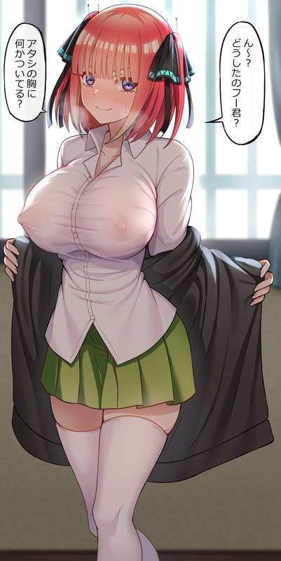 ニノの乳首ポチを描きたかっただけなので、差分は特にないです。 でもいいねが多ければ、風太郎が誘惑に負けてニノの乳首をクリクリする差分を描きます。