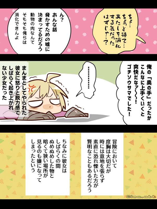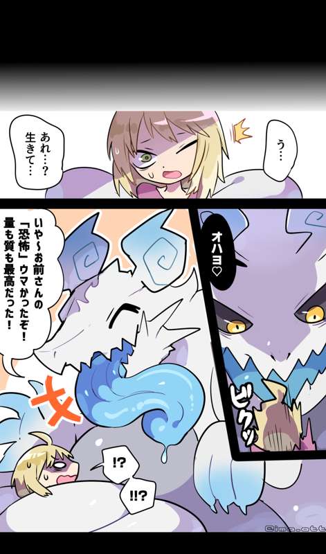 丸呑み、お手軽に死の恐怖を味わわせることが出来るので人間をビビらせたい魔物とか妖怪とかに重宝されてそうですね 絶対されてる