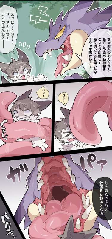 竜人にケモノくんがお仕置きで丸呑みされちゃうvore漫画