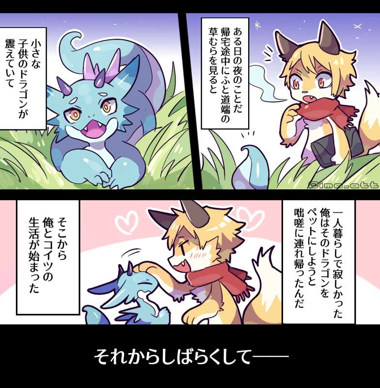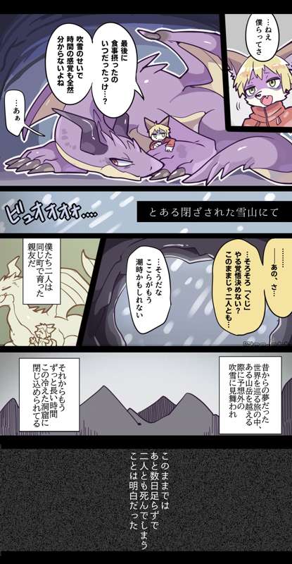 遭難して親友を食べることになったドラゴンと食べられることになったケモノくんのvore漫画