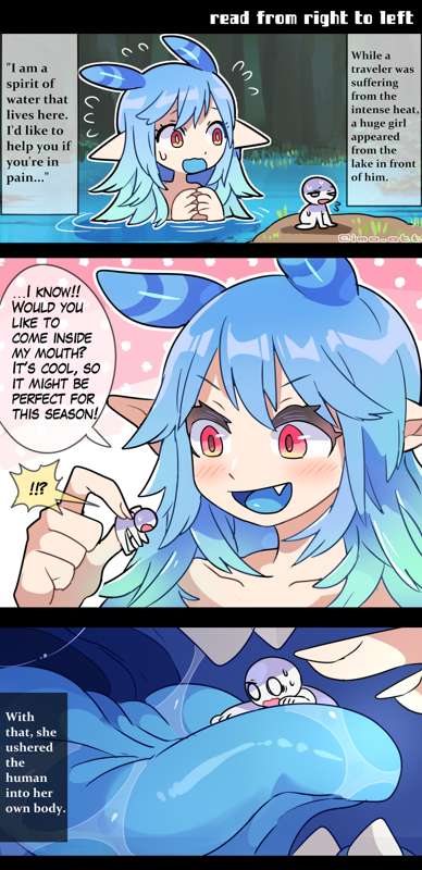 巨大な水の精霊娘のお腹に入って気持ち良くなっちゃうvore漫画