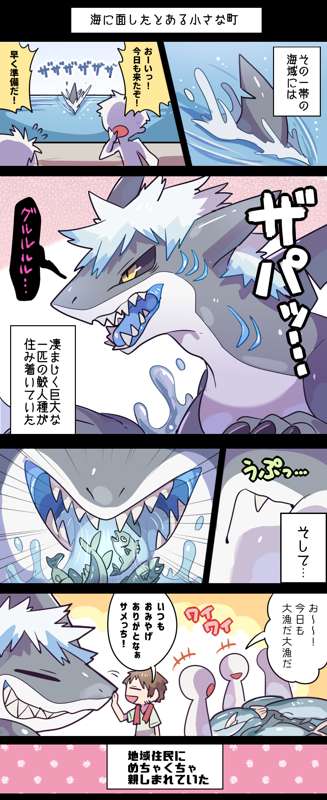巨大な鮫人が丸呑みの楽しさに目覚めてしまうvore漫画