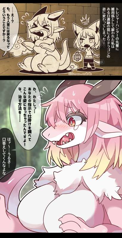 ドラゴンに強制変身させられたエルフが仲間を食べちゃうTF&vore漫画