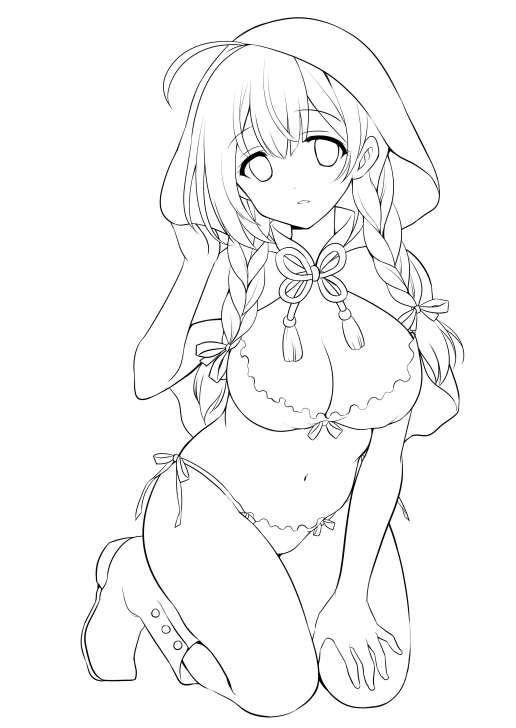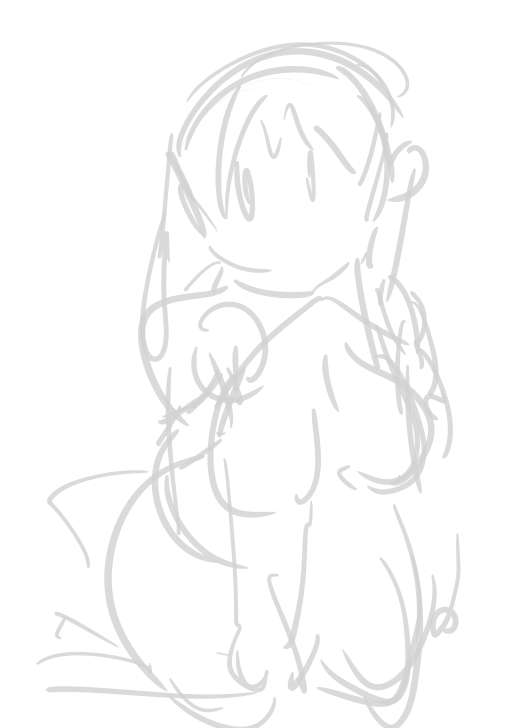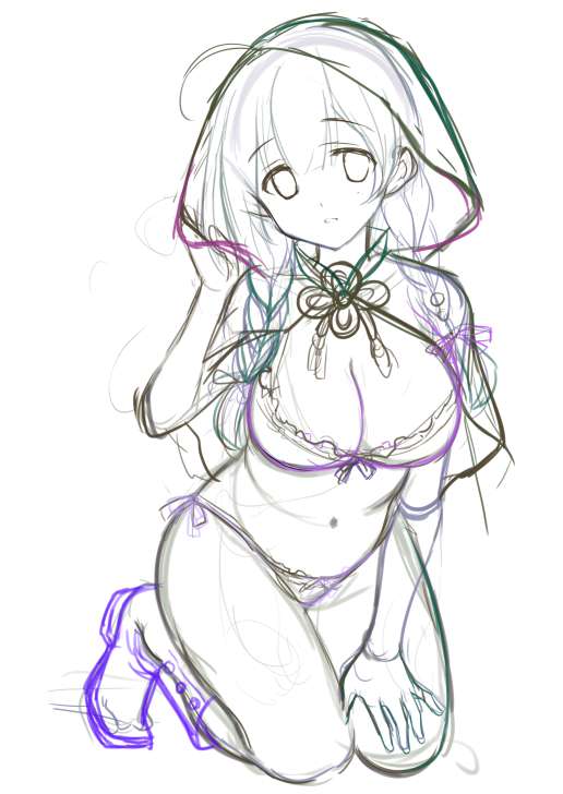 普段早い段階で捨ててしまう大ラフとラフが残ってましたので、高解像度と一緒につけてみました 何度も何度もラフ重ねて描くのでとても遅いです…