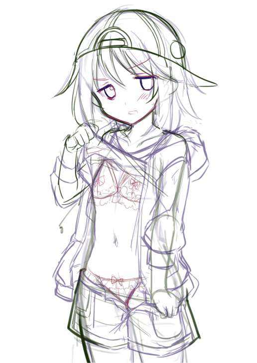 Twitterに描いてた晴ちんの高解像度のものと トップの紐ない版の差分と 没にしたラフです 罪悪感が勝ったので闇の晴Pとしての修行が足りませんでした