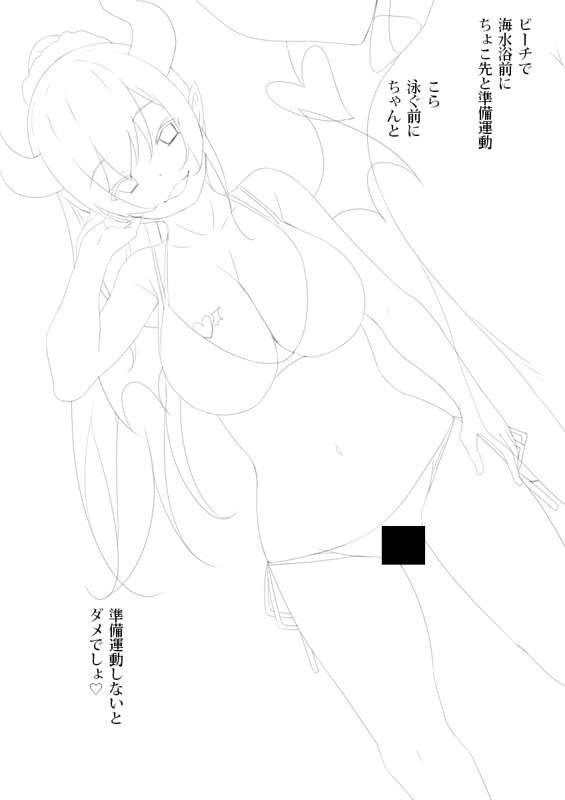 癒●ちょ●(ビーチで海水浴前に準備運動Vtuber線画)