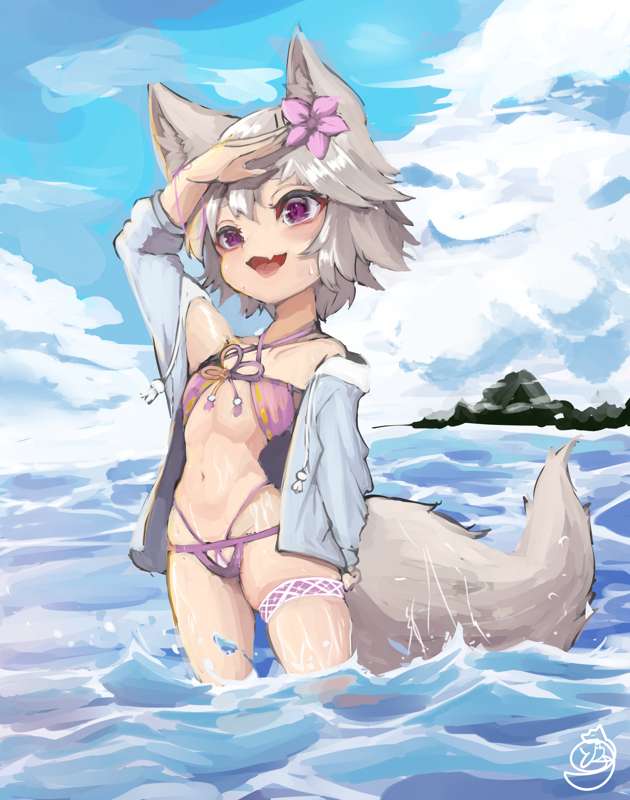 海と水着と狐【紫】【高解像度版】