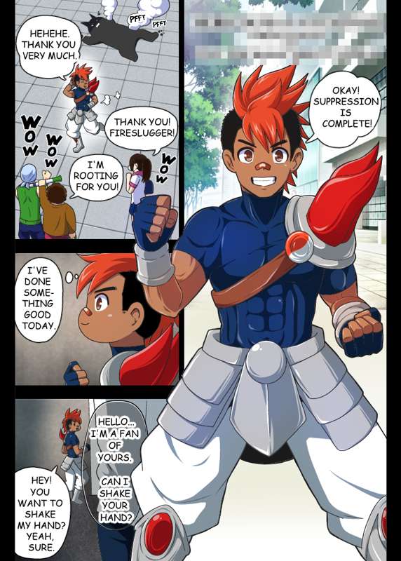 怪人をやっつけて町の人々から声援を受けるファイアスラッガーくん!そこに怪しげな何者かが近づき…一体どうなってしまうでしょう。どういうネタかも更新までのお楽しみとさせてください;