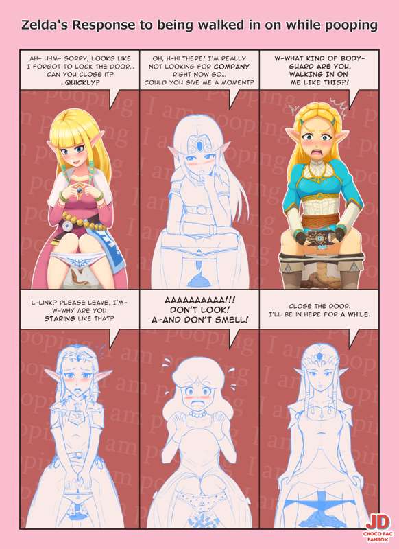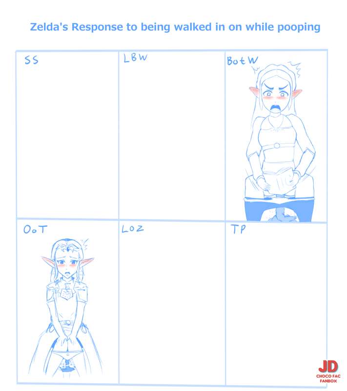 Zelda's response to being walked in on while pooping - WIP Sketch