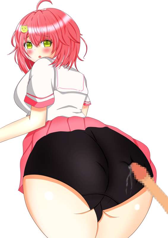 さくらみこのデカ尻と地味な黒パンツに我慢汁塗れのペニス擦り付け