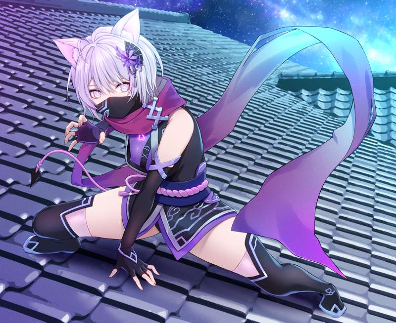 「屋根の上にしゃがみ込み、体を曲げて偵察している対魔忍」 リクエストありがとうございました。