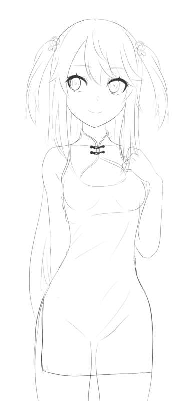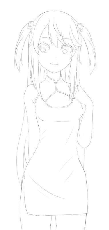 チャイナテレシア ラフ、線画