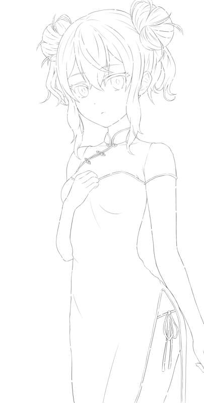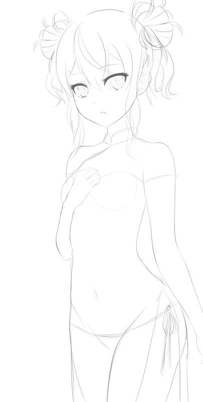 チャイナメリンダ ラフ、線画