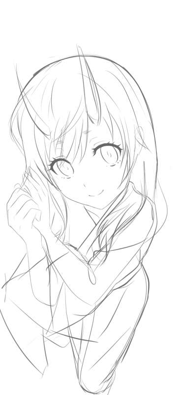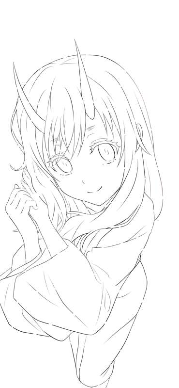 添い寝シュナ ラフ、線画