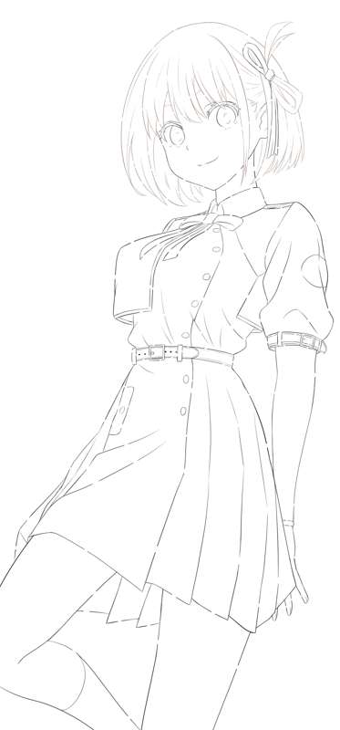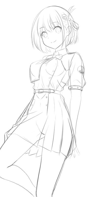 千束(制服) ラフ、線画
