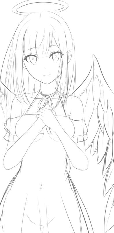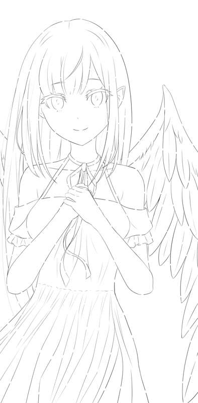 エンジェルエミリア ラフ、線画