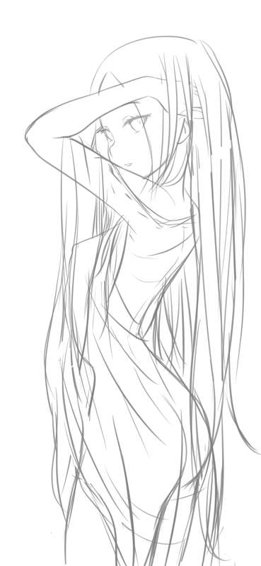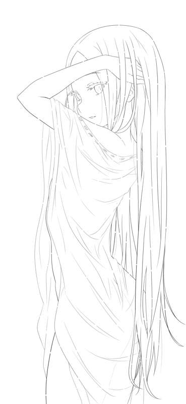 濡れ透けパンドラ ラフ、線画