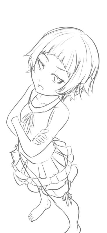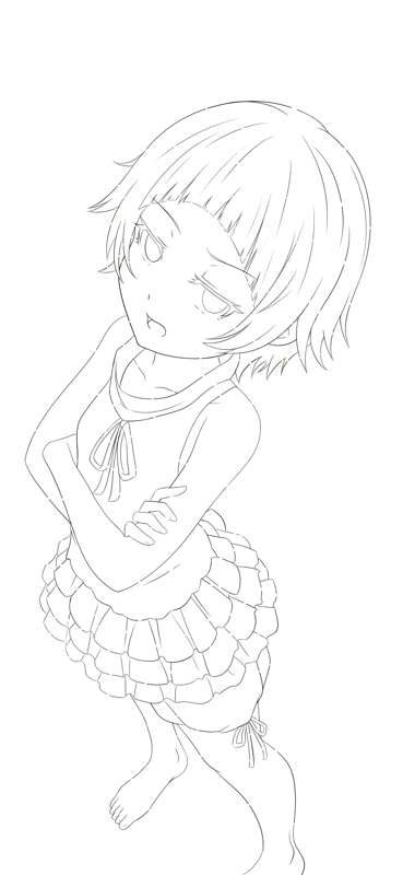 キスショット10歳 ラフ、線画